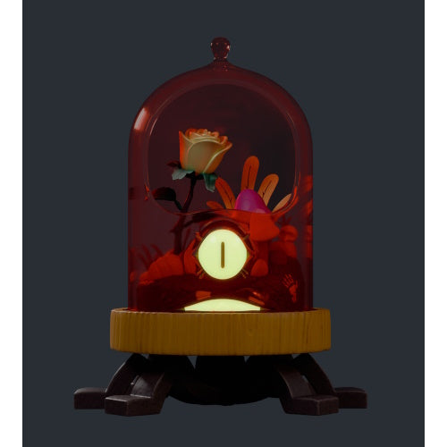Something isn’t right in the heart of the dark forest. The plants grow wild and wicked there, twisting the world around them. Be careful, you will be watched. Plastic cloche is removable. Eyes and Teeth glow in the dark.