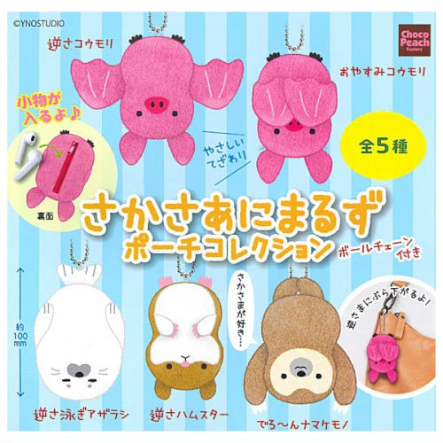 Upside Down Fuzzy Animal Plush Pouch Peach On 3-Inch Collectible